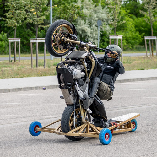 A biztonság az első! Ennek a képzésnek az egyik legfontosabb célja, hogy úgy tanulj meg egykerekezni, hogy se neked, se másnak ne essen baja közben! És természetesen a motorodon sem esik egy karcolás sem, hiszen a képzésen egy speciálisan erre a célra átalakított motort használunk.